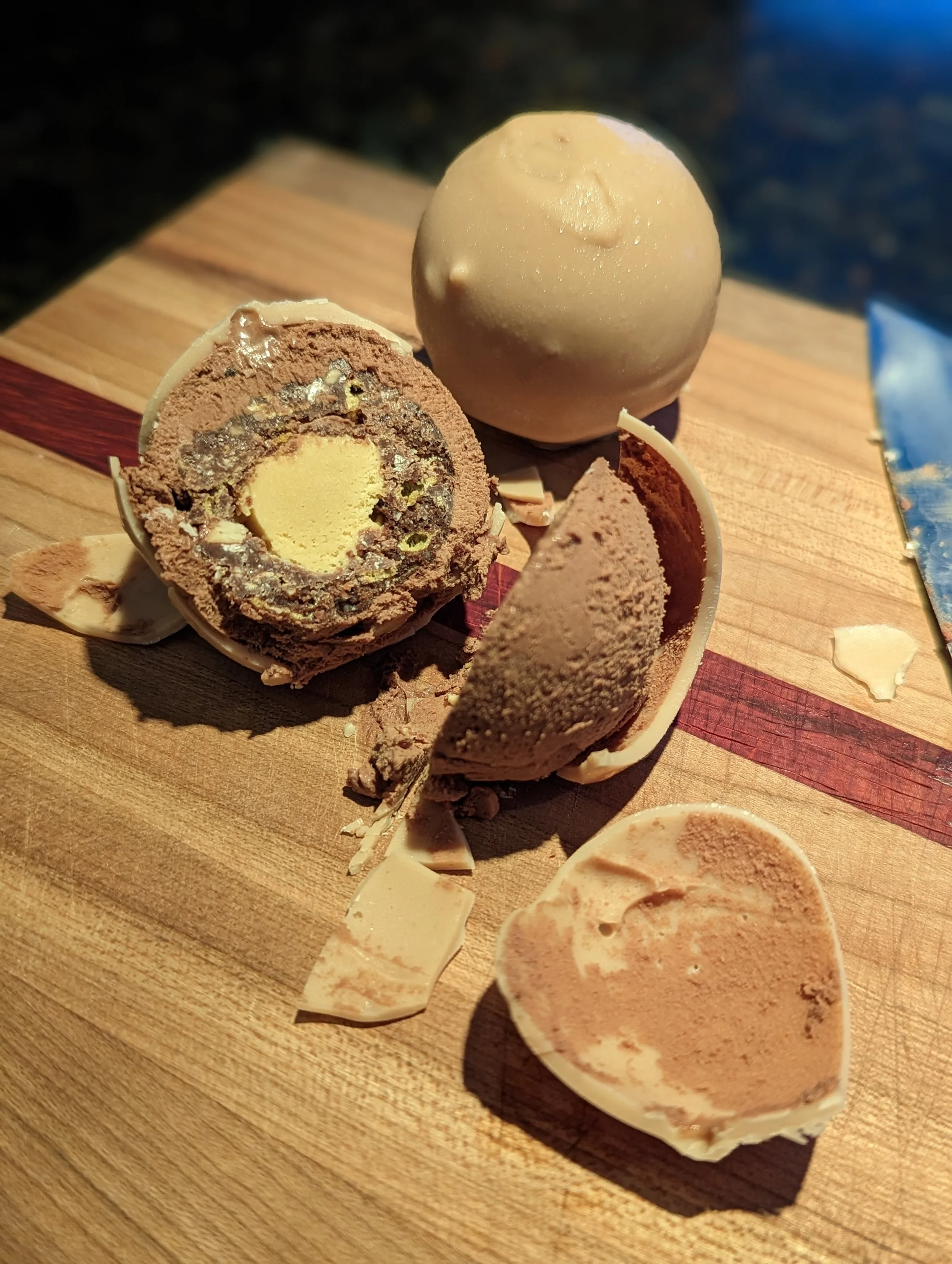 Chocolate Bomb - Salted Caramel Cremuex center, Chocolate Crumble Crunch, Chocolate Mousse, Mixed Chocolate Shell