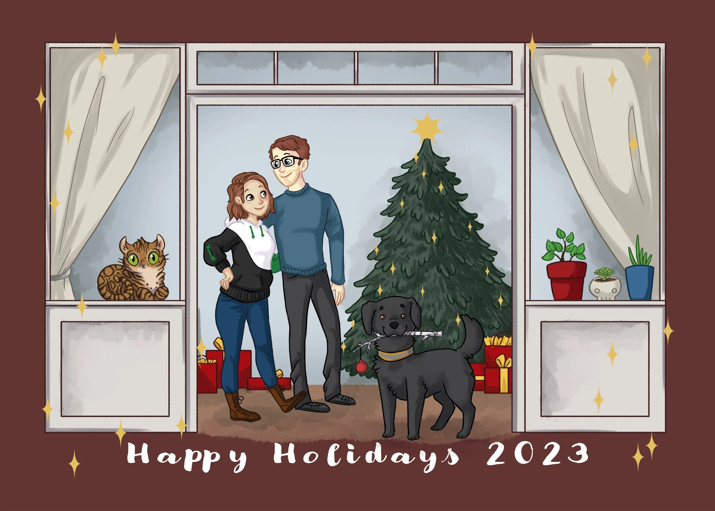 Holiday Card 21-22 My husband has a holiday card tradition, so since we got married, I have made a custom illustration card to send out to friends and family. This also allows us to see how our family changes and grows.