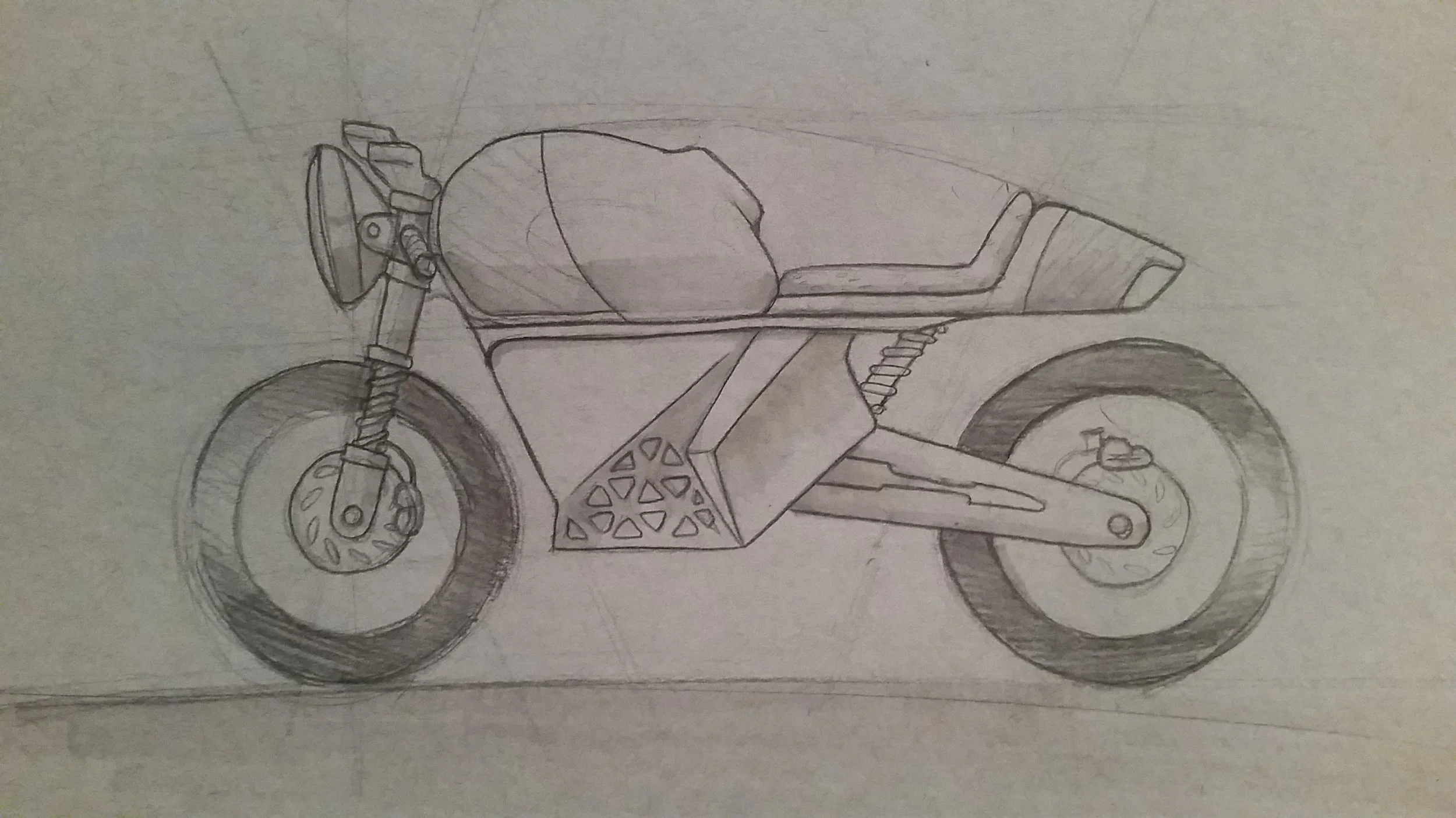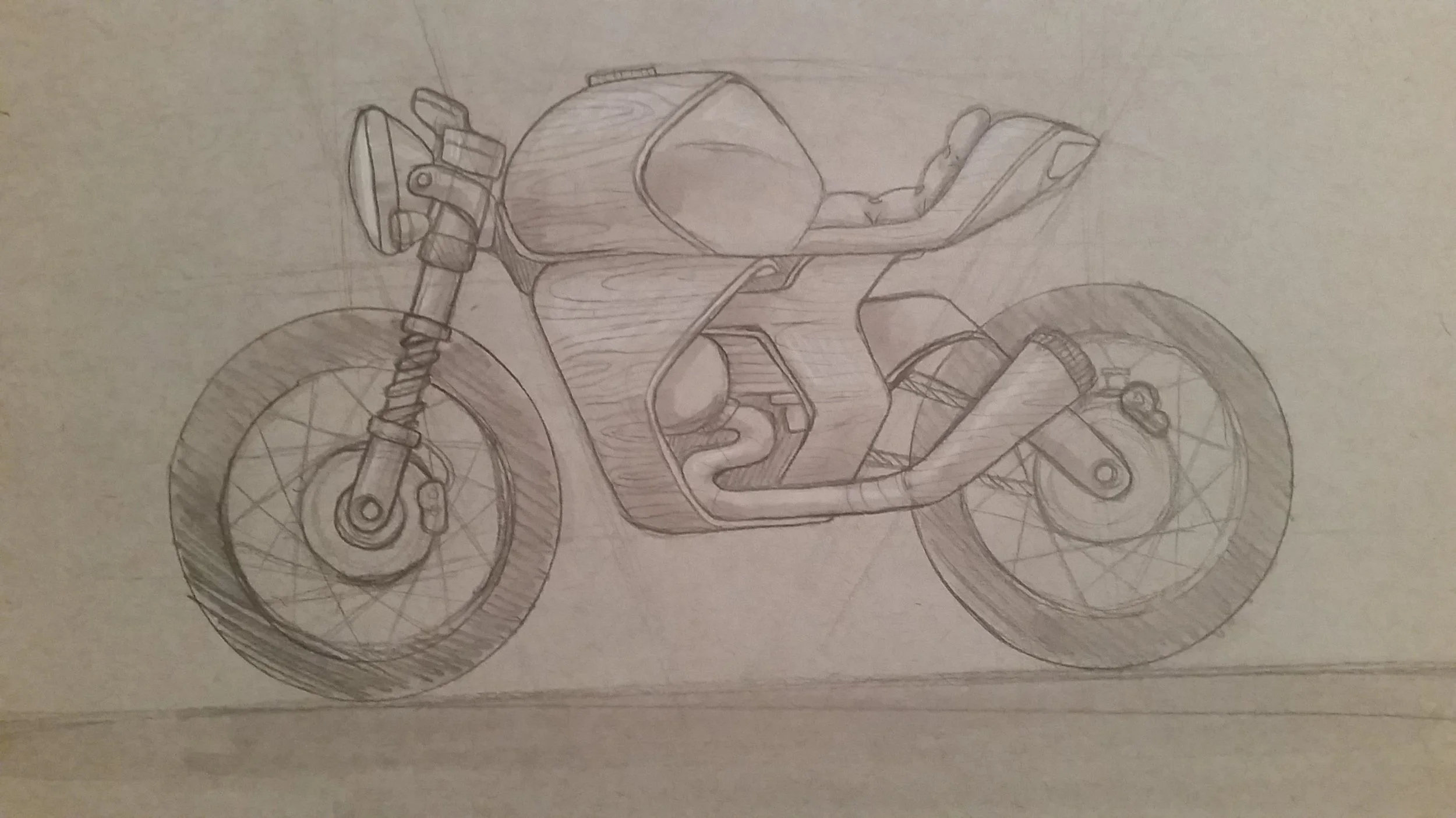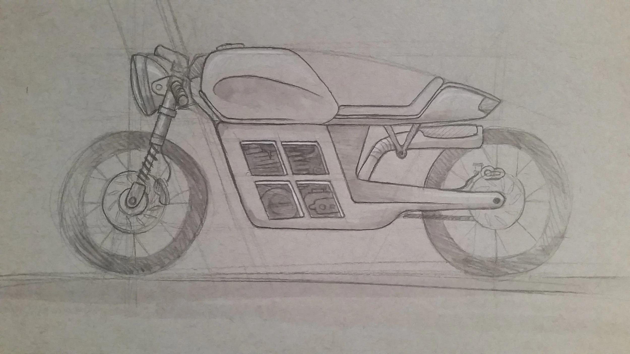 Cafe Racer Pencil Sketch styled after Yves Behar