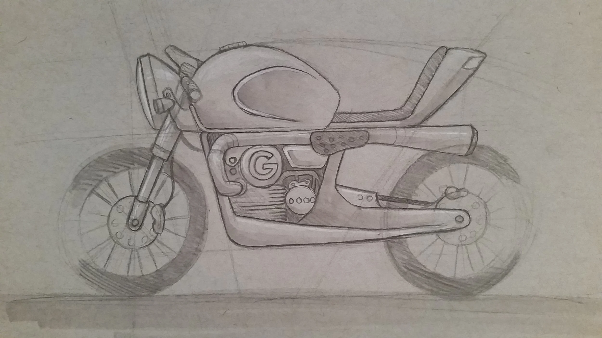 Cafe Racer Pencil Sketch styled after Google