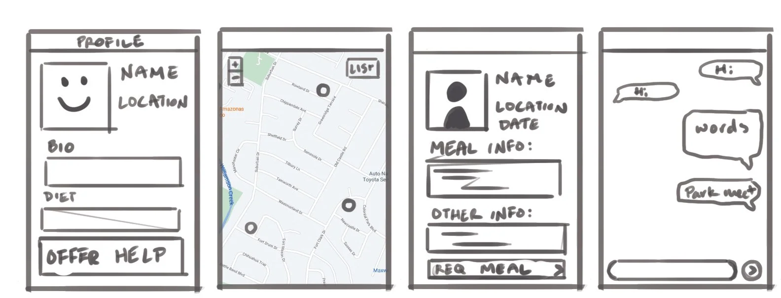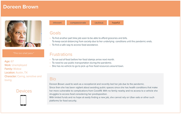 For Austin Design Week's 2020 Design-a-thon, I worked with 4 other women to design an app that leveraged social connections to improve the community. We chose to focus on food insecurity.