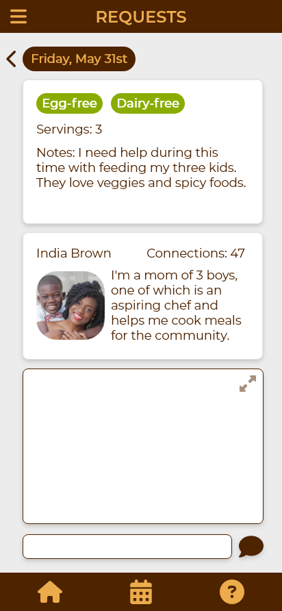 However, I did make this new concept something more achievable than the previous one. Instead of relying solely on giving addresses out to strangers who need help, I created communal events where strangers within a community came come together to help ensure the entire community is fed.